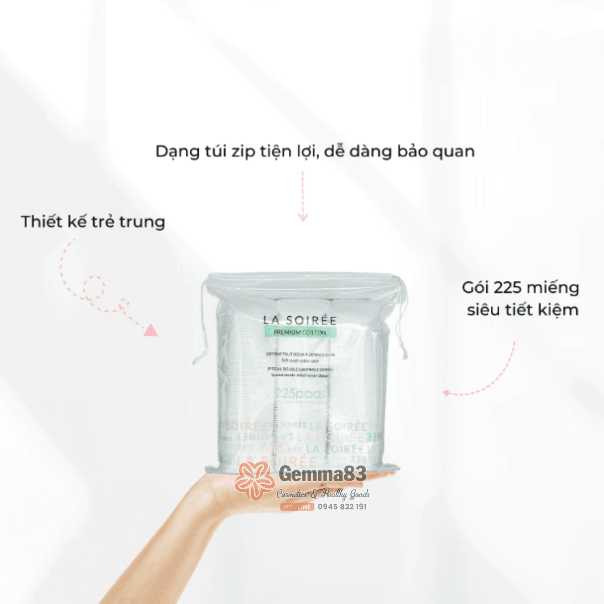 Hiểu được điều này, thương hiệu La Soirée đã cho ra mắt sản phẩm Bông tẩy trang Premium Cotton 225 miếng, với sứ mệnh mang đến cho người dùng giải pháp an toàn và hiệu quả trong việc hỗ trợ làm sạch da. Với thành phần hoàn toàn tự nhiên, sản phẩm có khả năng thấm hút tốt, giúp tiết kiệm được dung dịch tẩy trang và làm sạch da hiệu quả.
